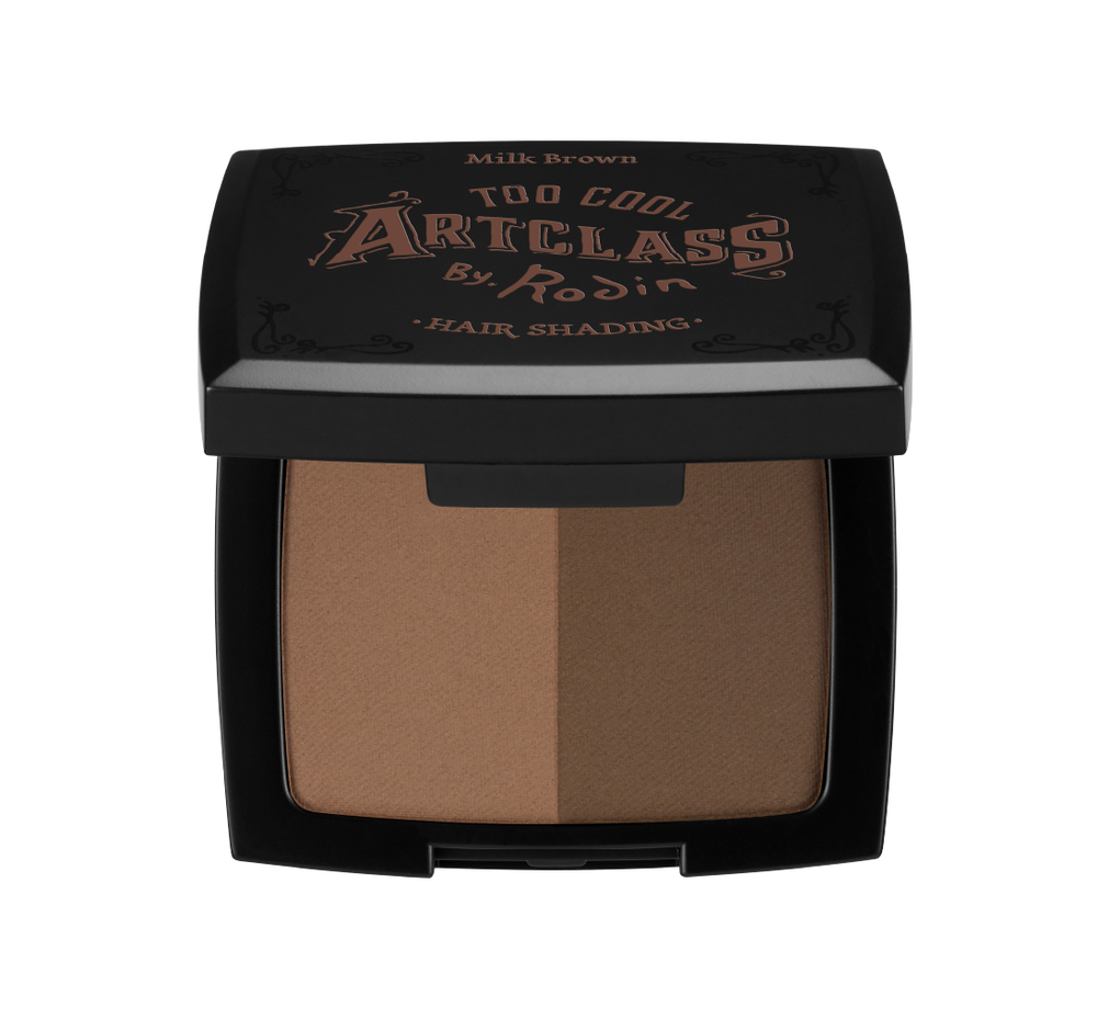 1. Use the puff (included) to mix the two colors and apply on the forehead and sides of the head by creating a natural gradation and fill sparse areas by shading.