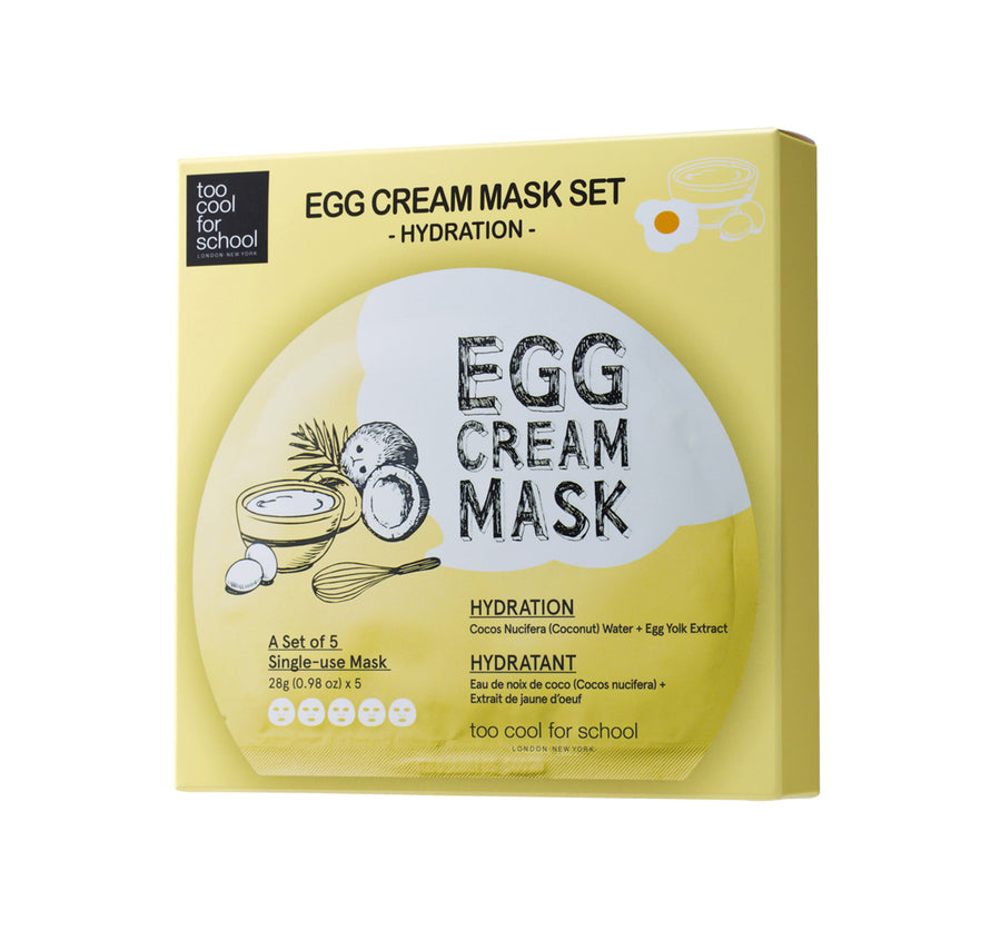 Egg Cream Mask Hydration Set (5 sheets) is a value set (value $30), which features 5 of the best-selling Egg Cream Mask Hydration sheet masks for an instant boost of hydration and radiance.